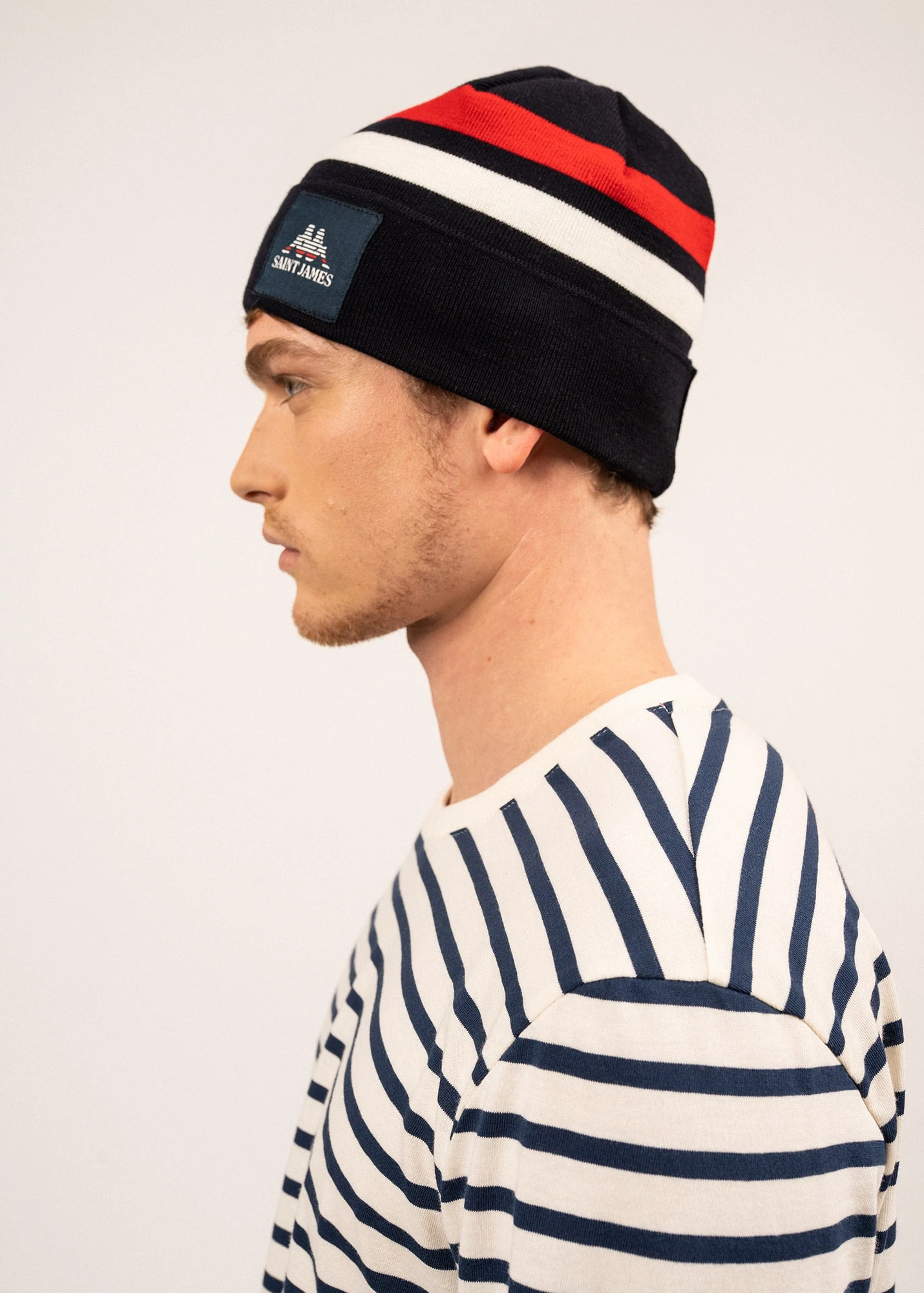 Tricotée en laine, le bonnet Kop est reconnaissable à ses deux bandes blanche et rouge, rappelant les couleurs de l’équipe de football caennaise.