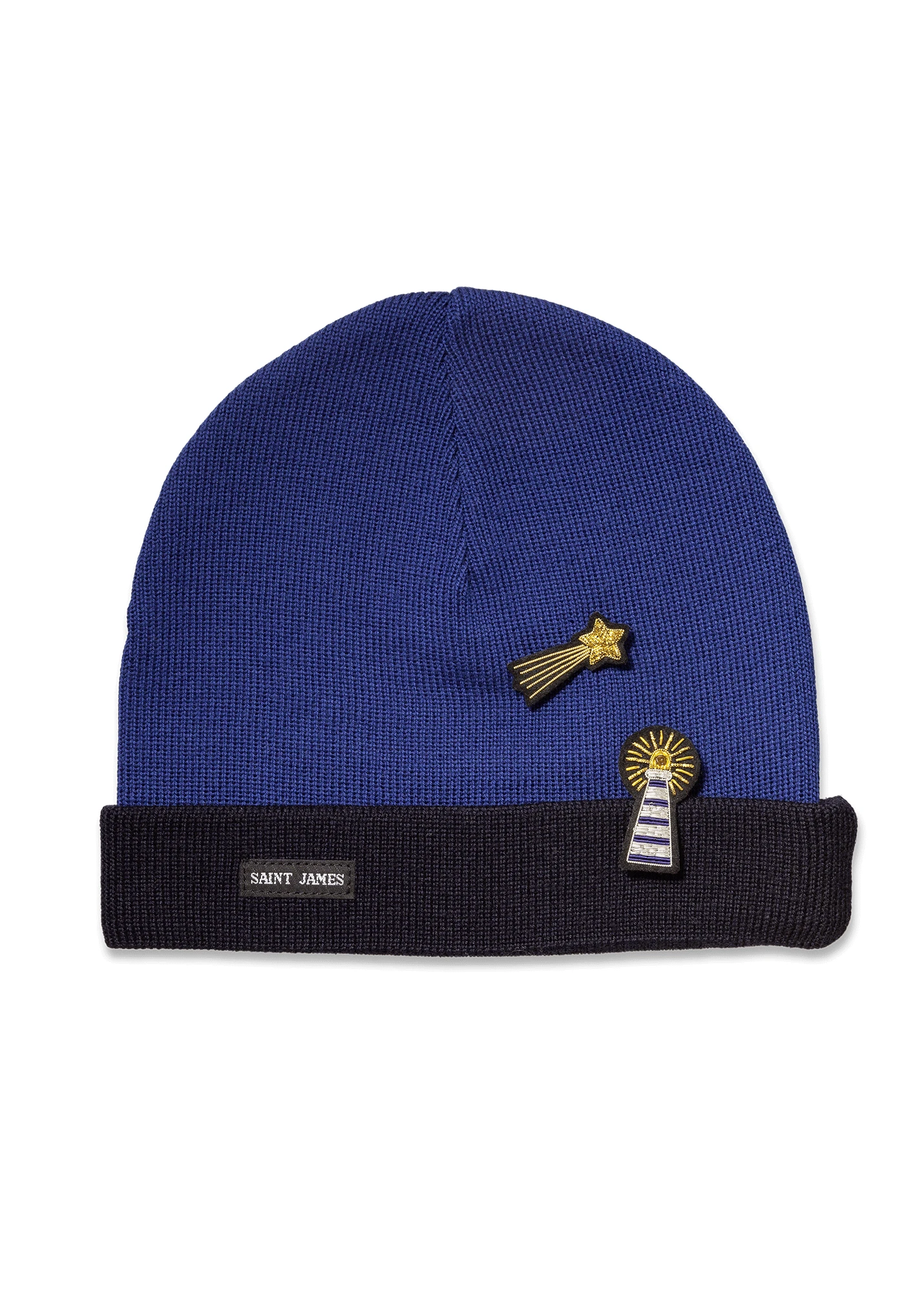 Comme un phare dans la nuit, ce bonnet bleu est lumineux et rassurant. On aime ses deux broches brodées, représentant un phare et une étoile filante.