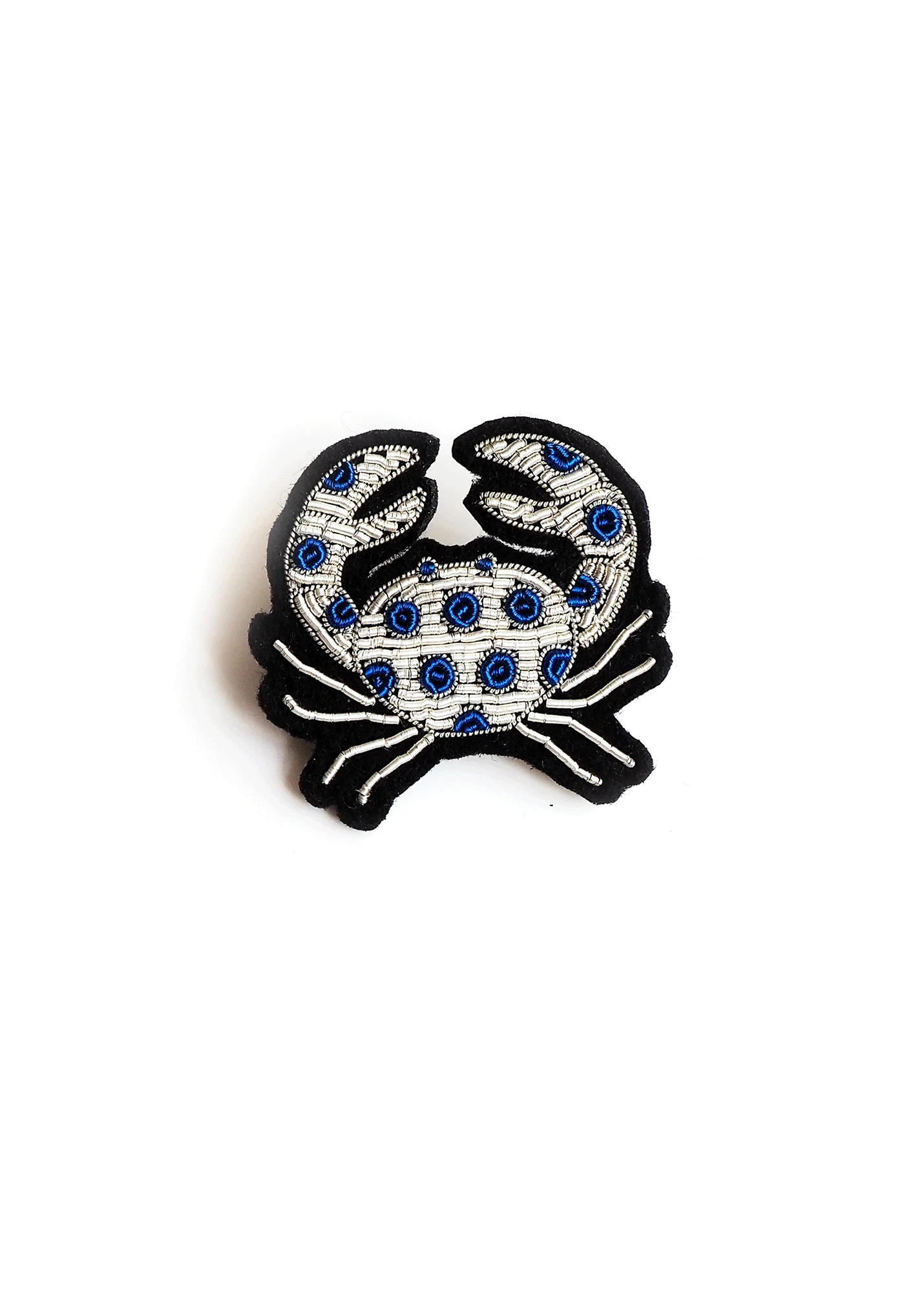 Imaginée en exclusivité pour SAINT JAMES par la marque granvillaise Macon & Lesquoy, cette jolie broche brodée représente un crabe à pois. On aime son design inspiré de l’univers marin, twisté par son motif à pois, surprenant et original.