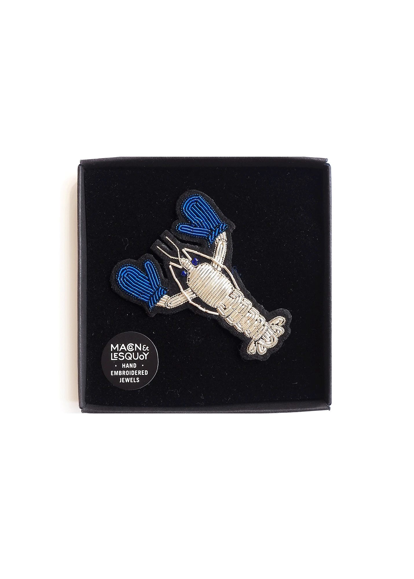 Décalé et original, ce homard restera bien au chaud peu importe la saison avec sa paire de gants bleus ! Brodée à la main par Macon & Lesquoy, cette broche est parfaite pour ajouter un peu de folie et de style à vos tenues.