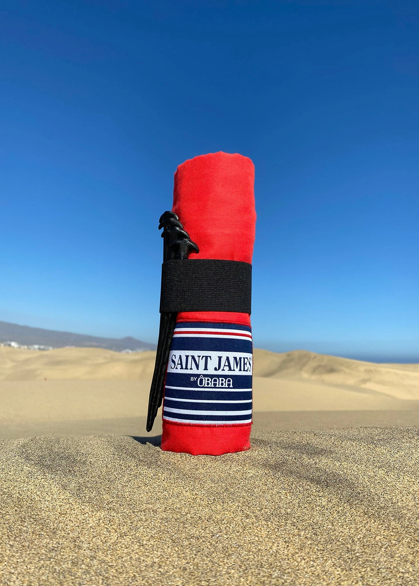 Made in France, 100% coton et spacieux (5m²), le drap de plage XXL+ ÔBABA pour SAINT JAMES est retenu à chaque extrémité par des “piquetas” en fibre ultra légère, évitant ainsi qu’il ne s’envole. Confectionné en voile de coton léger et très résistant, il ne laisse pas passer le sable. Naturellement doux et compact, c’est le drap de plage idéal pour un été en famille au bord de l’eau.