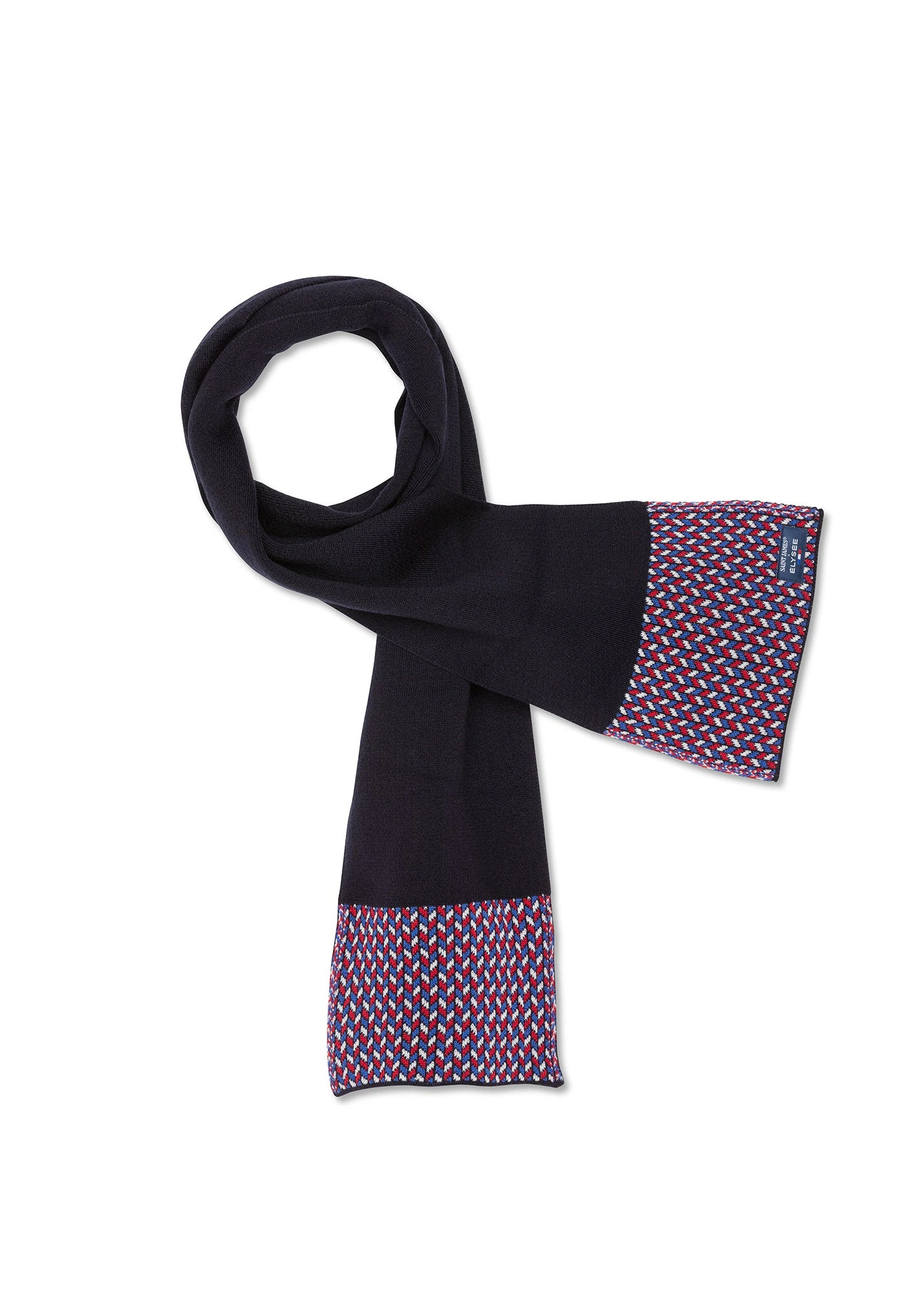 Imaginée dans le cadre de notre collaboration avec l’Elysée, cette écharpe tricotée dans nos Ateliers est une écharpe en laine, chaude. Aux extrémités, un motif jacquard termine le modèle, en rappelant nos coloris classiques ainsi que les couleurs de la République Française.