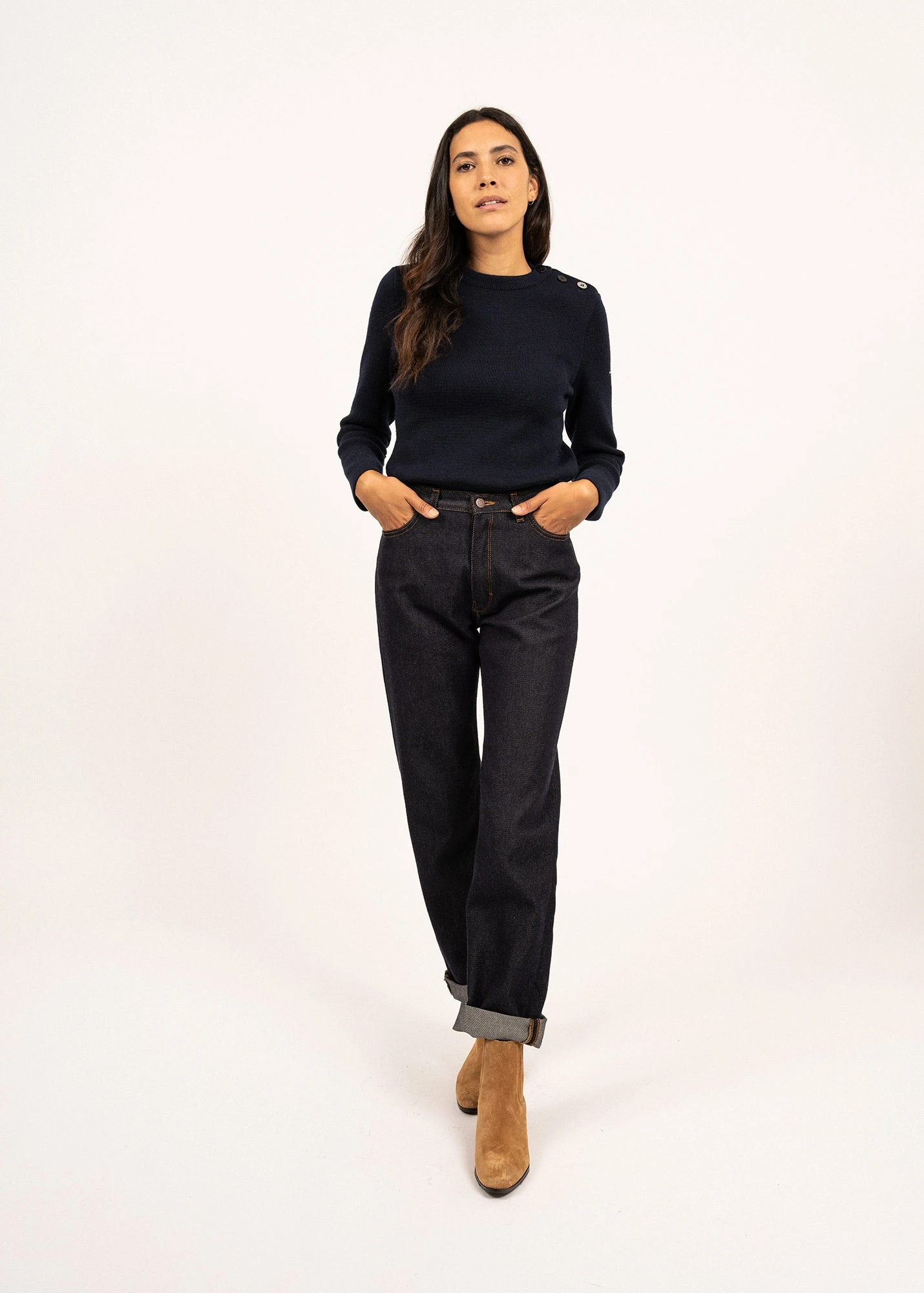 SKU: C2FPB 7346815959204 Categories: Femme, Pantalons shorts Tags: __l:jean-droit-apolline-merinos-saint-james-atelier-tuffery-marine, 030, 1237, 1237_MARINE, 34 à 50, Ah22, AH23