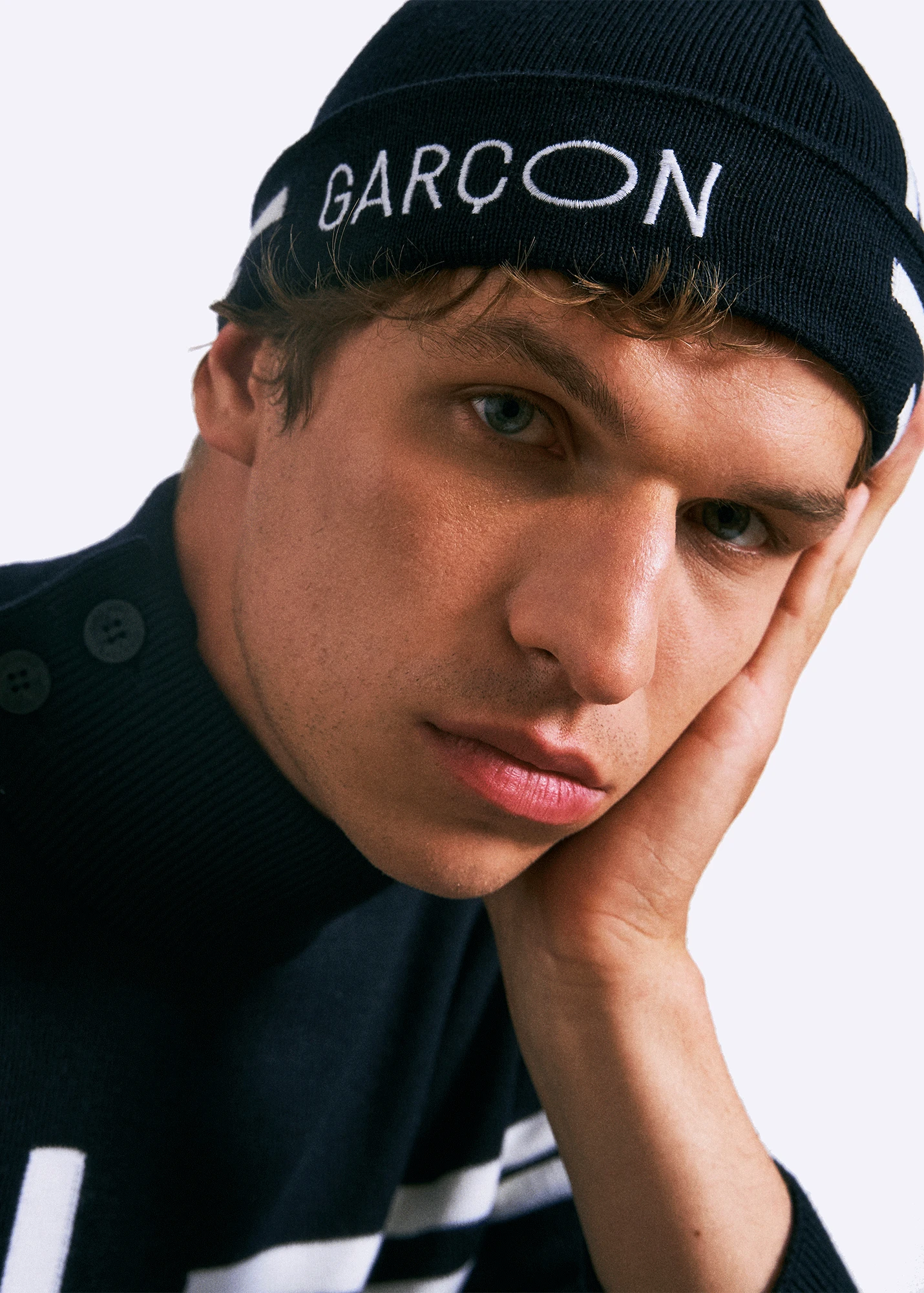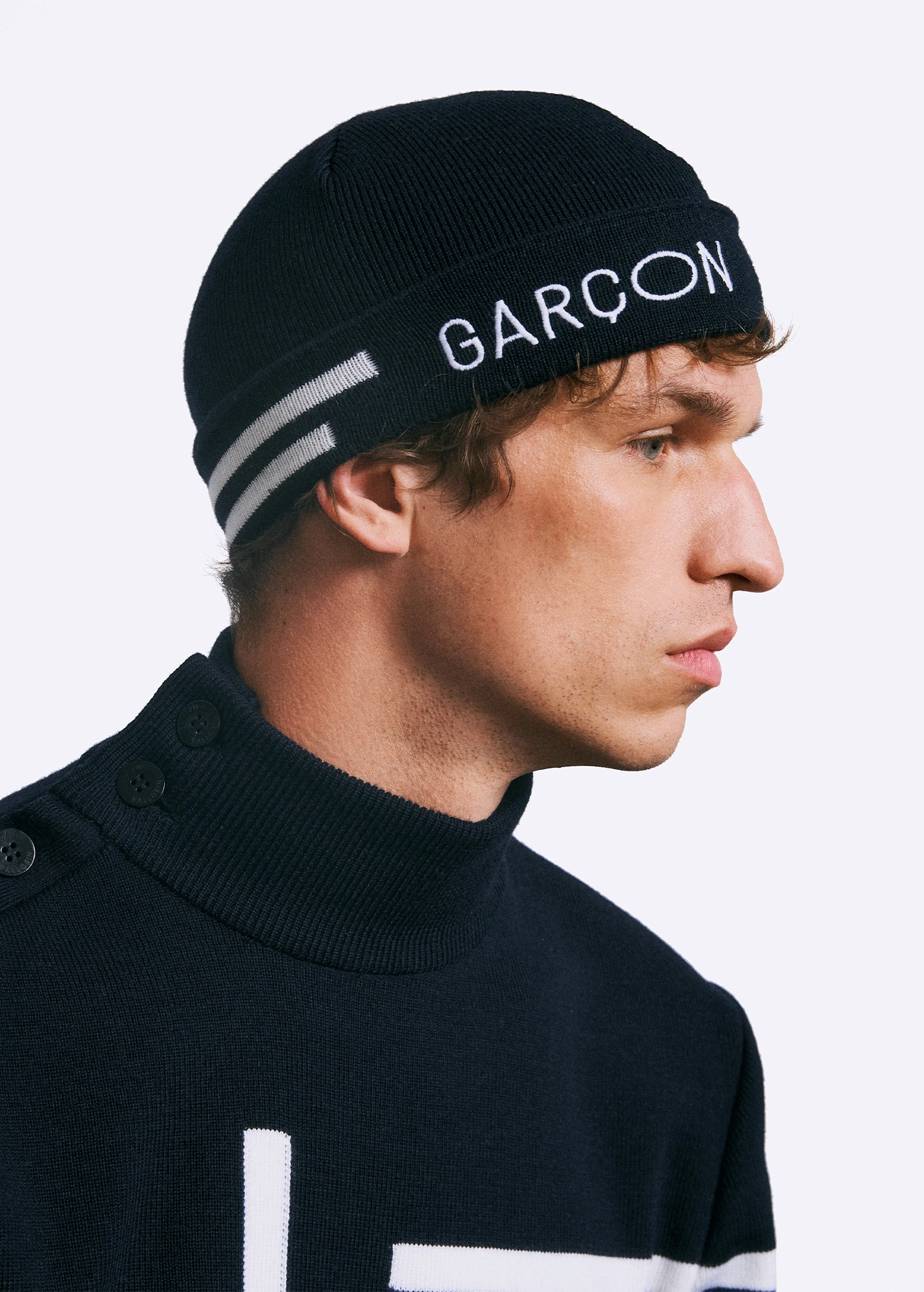 – Broderie contrastée ‘GARCON’ sur le revers