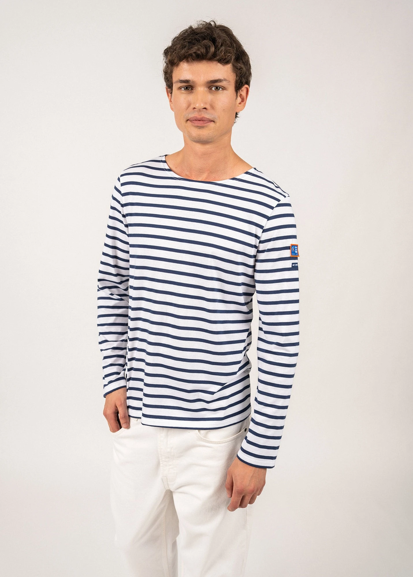 En coton léger, la marinière Minquiers TJV reprend les codes de notre marinière iconique. Une pièce intemporelle et classique, idéale pour les amoureux de la voile et de la mer.