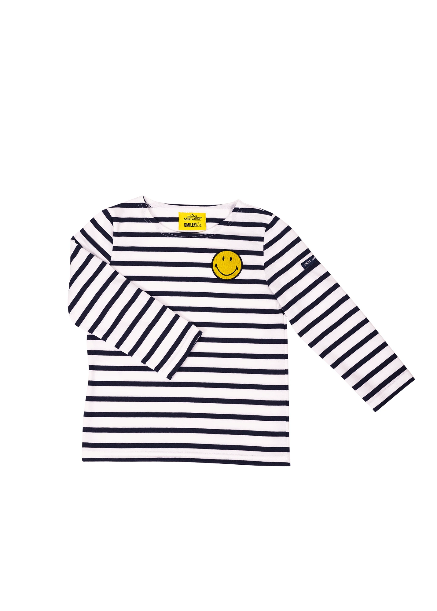 Version enfant de notre iconique Minquiers, cette marinière mettra du sourire dans la garde-robe des petits. Créée à l’occasion du 50ème anniversaire de la marque au sourire, la marinière enfant SAINT JAMES x Smiley garde ses indémodables rayures et y ajoute du sourire et de la joie grâce à son patch brodé Smiley.