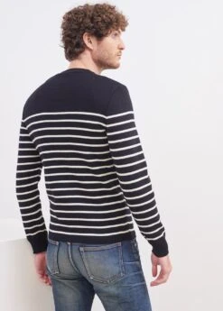 SAINT JAMES Pull Marin Rayé Galiote – Coupe Droite, En Laine Mélangée (NAVY/ECUME)
