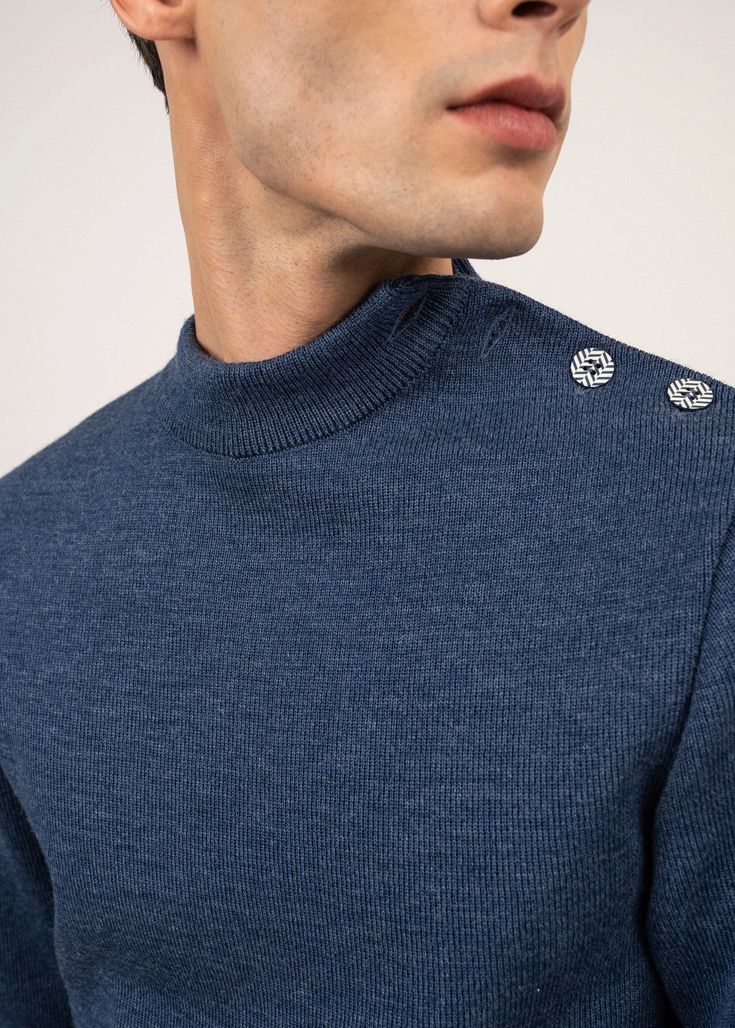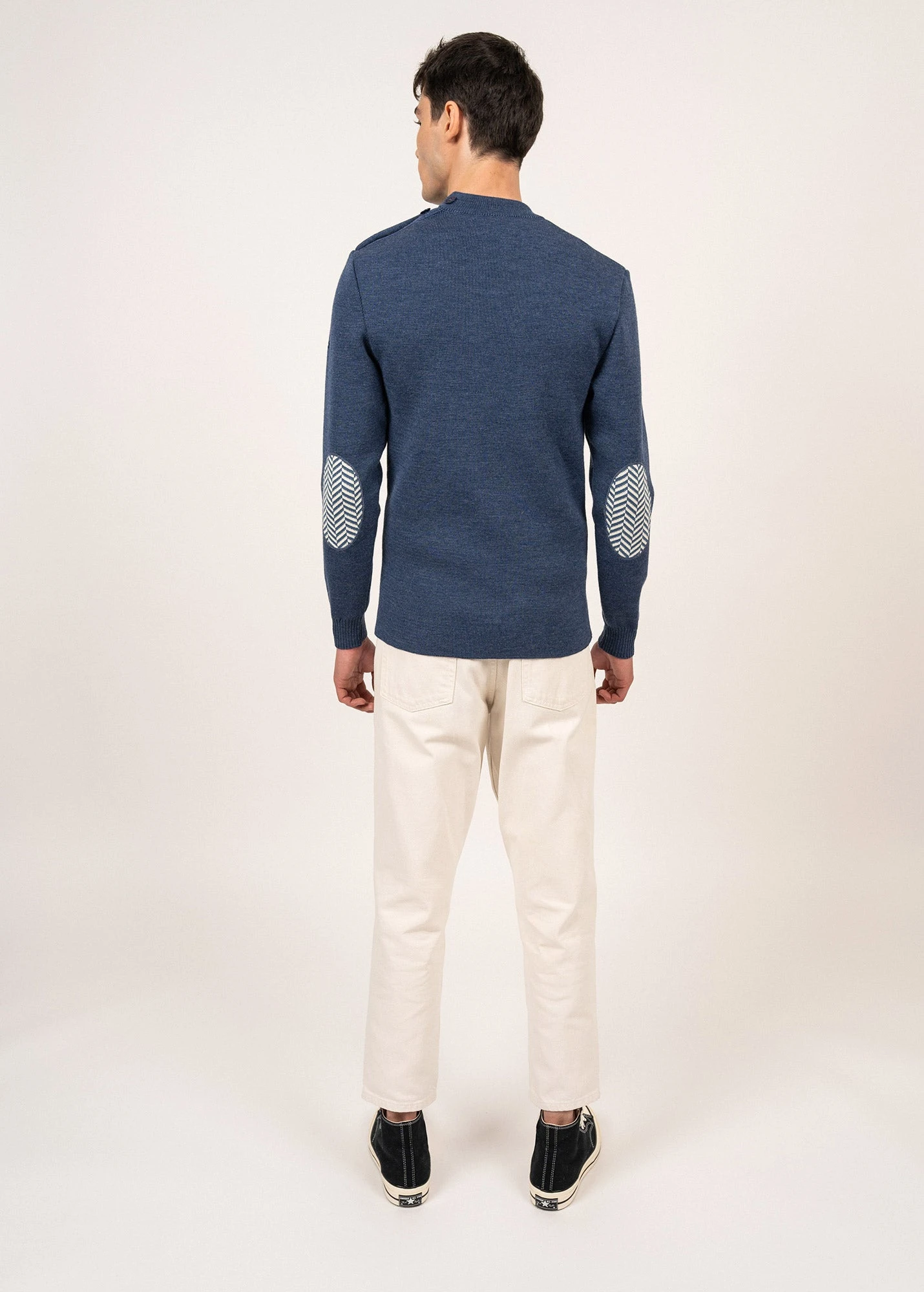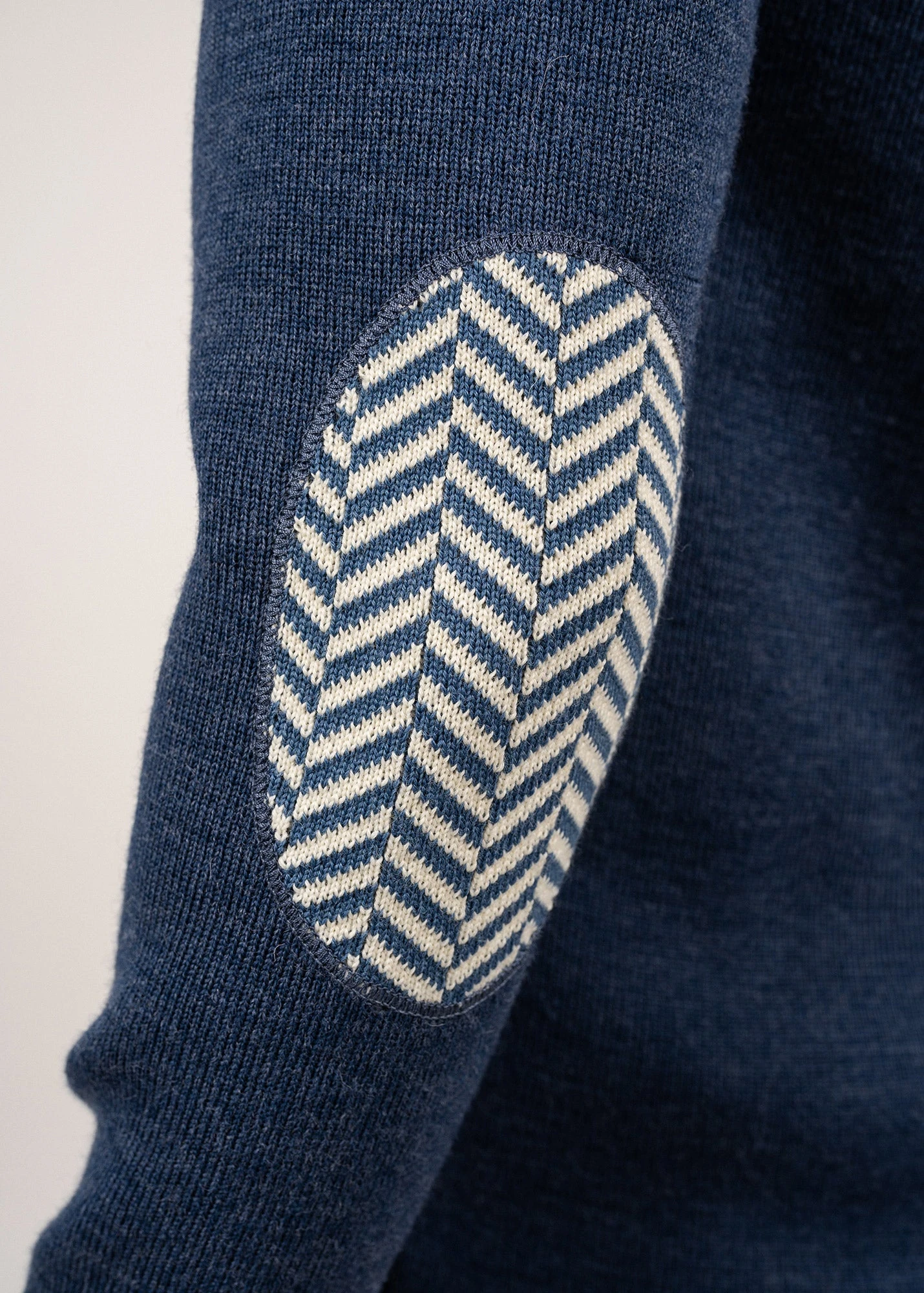 – Détail chevron tricoté en coudières et gravé sur 2 boutons