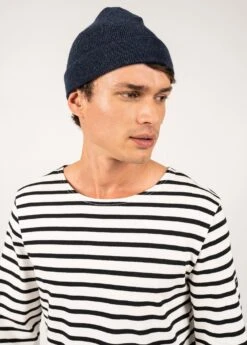 Célèbres pour leur longévité, les modèles Bonnets Saint James sont tricotés dans la même laine et dans un point identique aux pulls marins emblématiques, sollicités pour leur résistance et leur propriété isolante. Rayés ou unis, ces bonnets protègent du froid quand le tricotage serré limite l’absorption de la pluie.