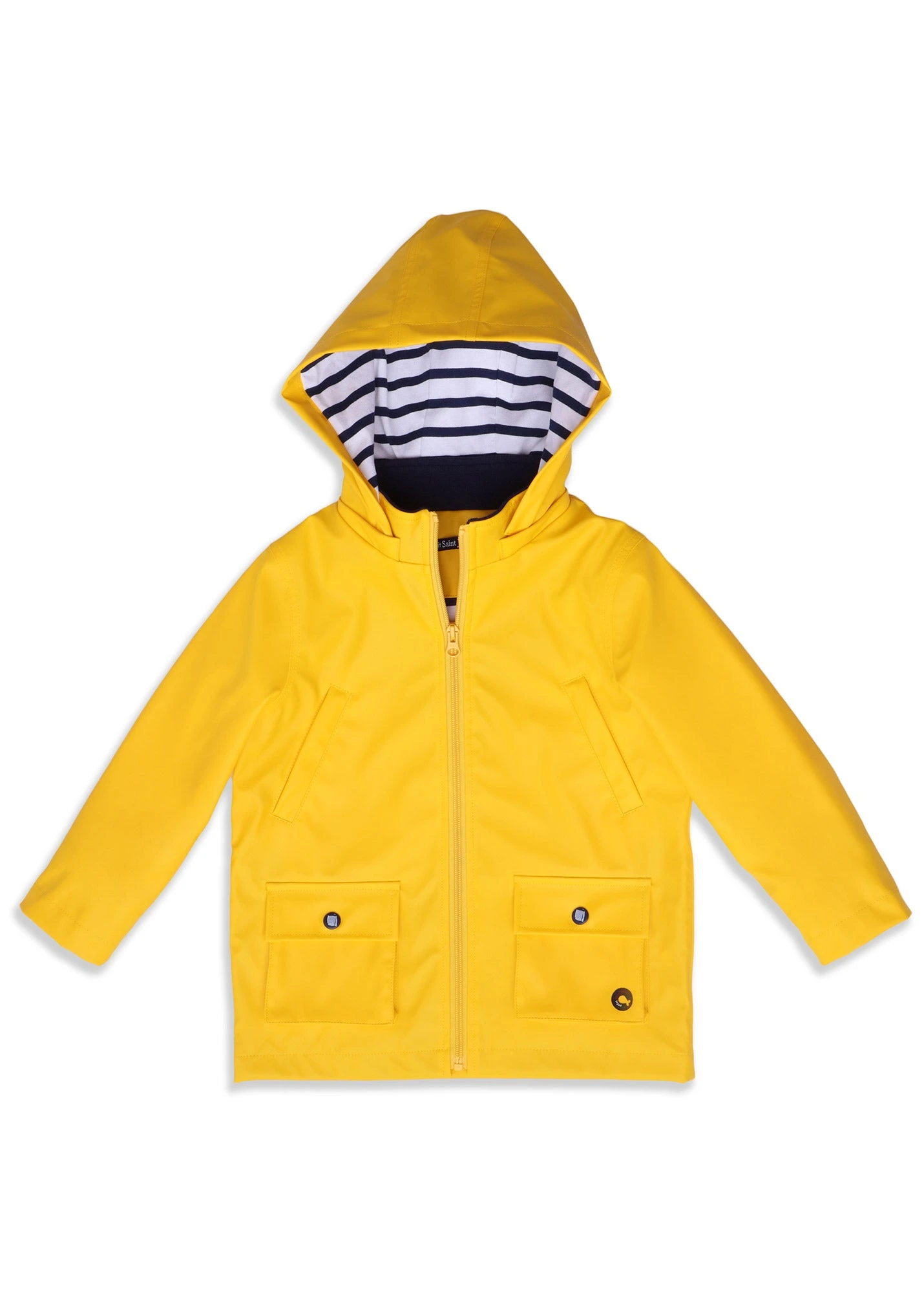Prêt pour affronter la pluie et le vent marin ! Ce joli ciré gardera votre enfant bien à l’abri. On apprécie son zip milieu devant et sa capuche détachable.