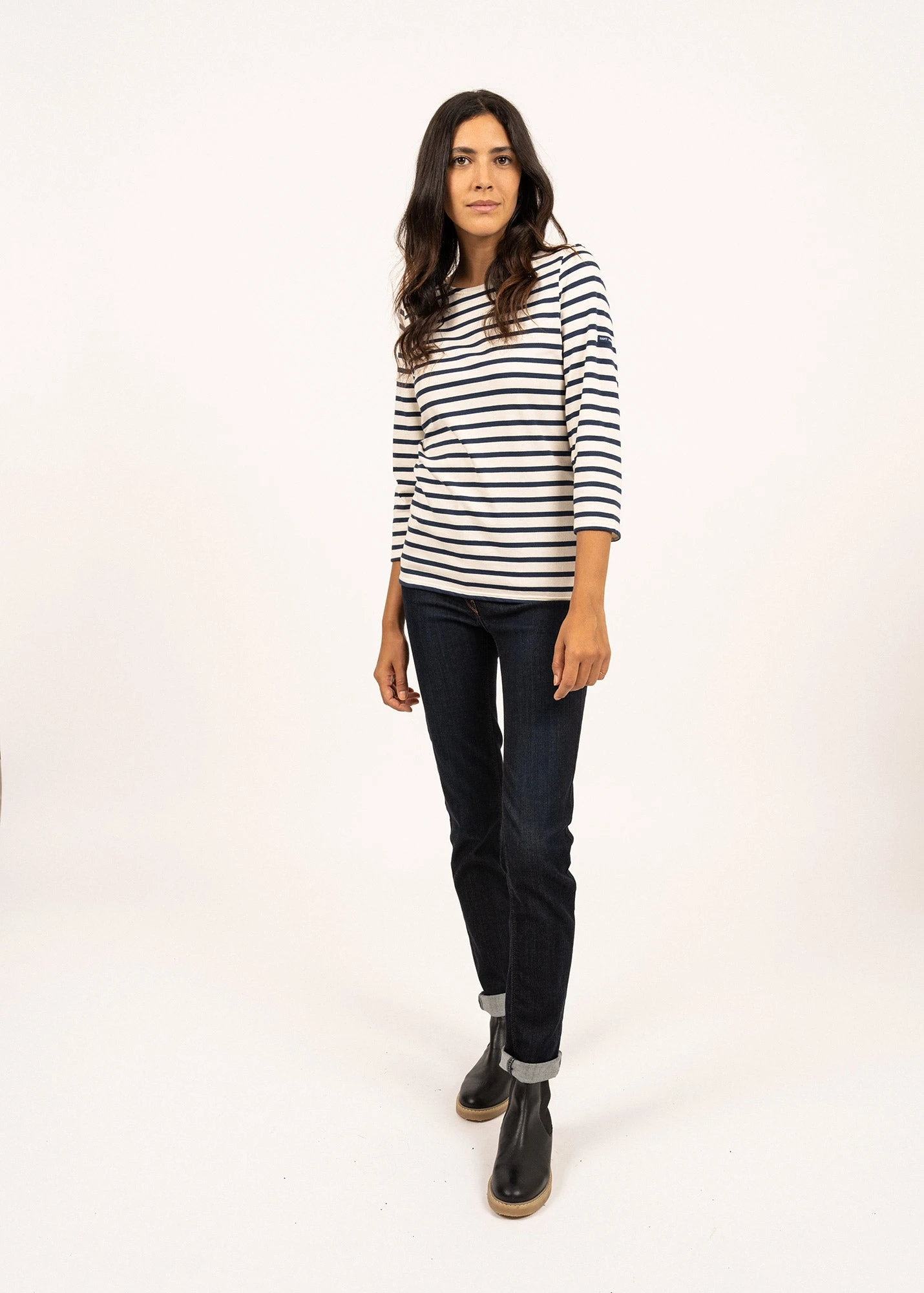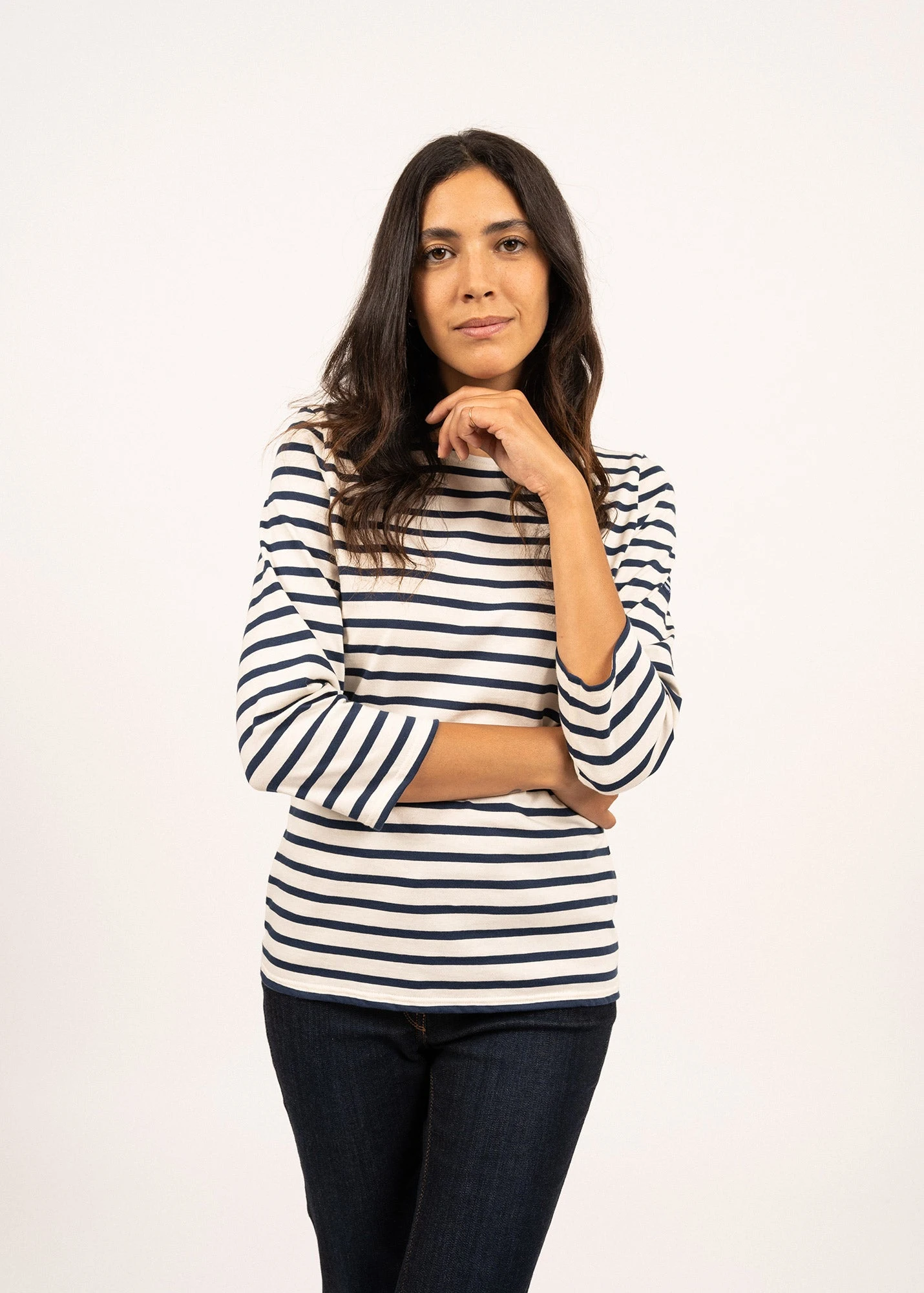 Be the first to review “SAINT JAMES Marinière Manches 3/4 Galathée – Coupe Ajustée, En Coton Léger (ECRU/MARINE)” Cancel reply