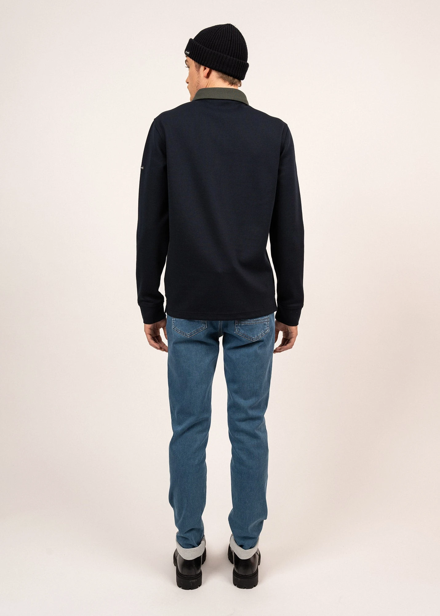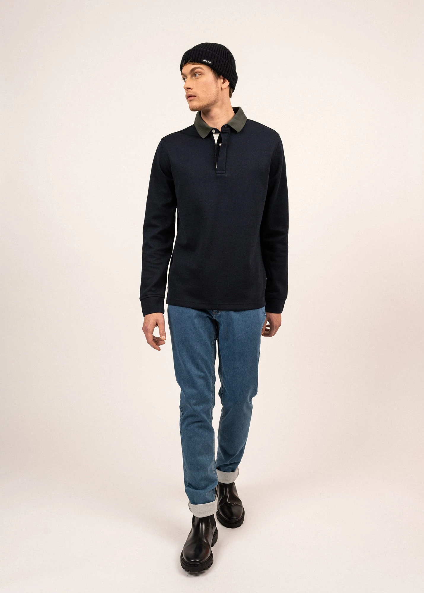 Pièce nautique par excellence, le polo se décline cette saison en manches longues, dans un mélange de coton et polyester, avec le modèle Lewis. On aime son toucher doux et moelleux, idéal pour affronter l’hiver, ainsi que son détail de col contrasté.