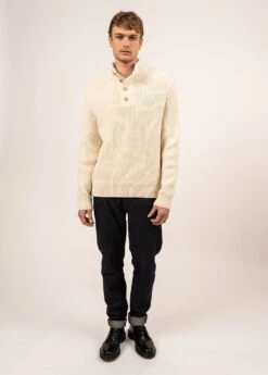 Confectionné en côte perlée, le pull Sare présente un aspect moelleux et doux. Tricoté en laine dans nos Ateliers et doté d’un col montant boutonné, il vous gardera au chaud tout l’hiver. Pour terminer, un bord-côte en bas de corps et aux poignets vous assure confort et maintien.