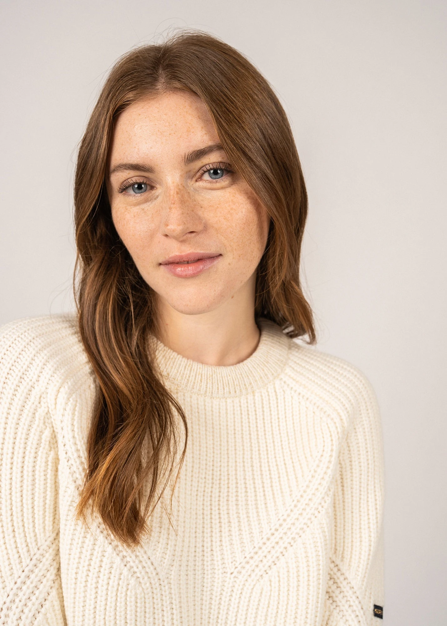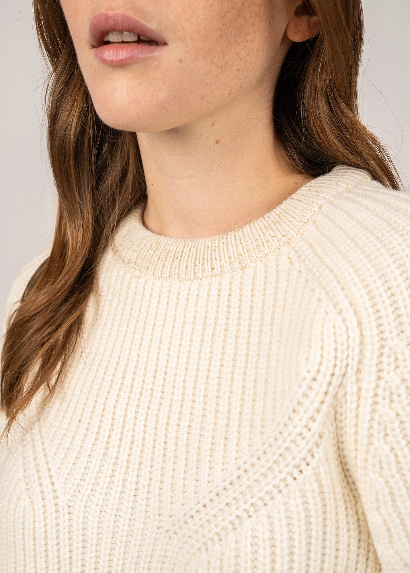 Déclinaison de notre pull Foggia, le pull Victoria est un pull à col rond, tricoté en maille perlée. Ses détails de lurex lui apportent lumière et féminité, pour une pièce hivernale, stylée et délicate.