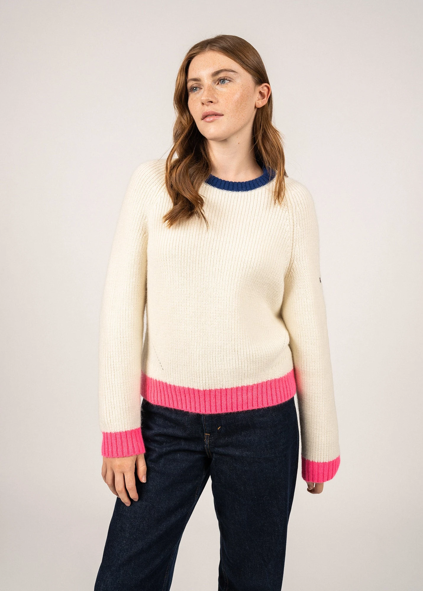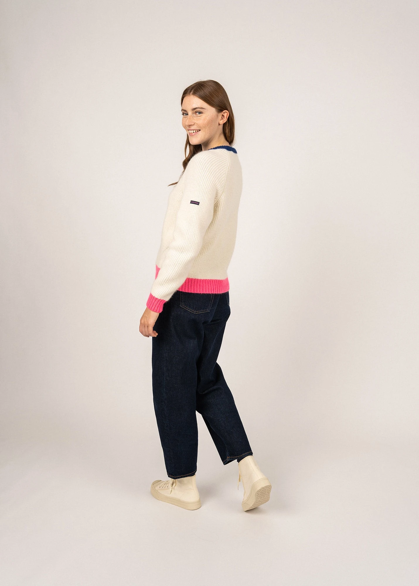 Tricoté dans nos Ateliers normands, le pull Hasparren mêle nos coloris de saison avec élégance et douceur. Confectionné dans un mélange de mohair et de matières synthétiques, il est duveteux, doux et moelleux, idéal pour passer l’hiver. On craque pour son esprit colorblock, moderne et visuel.