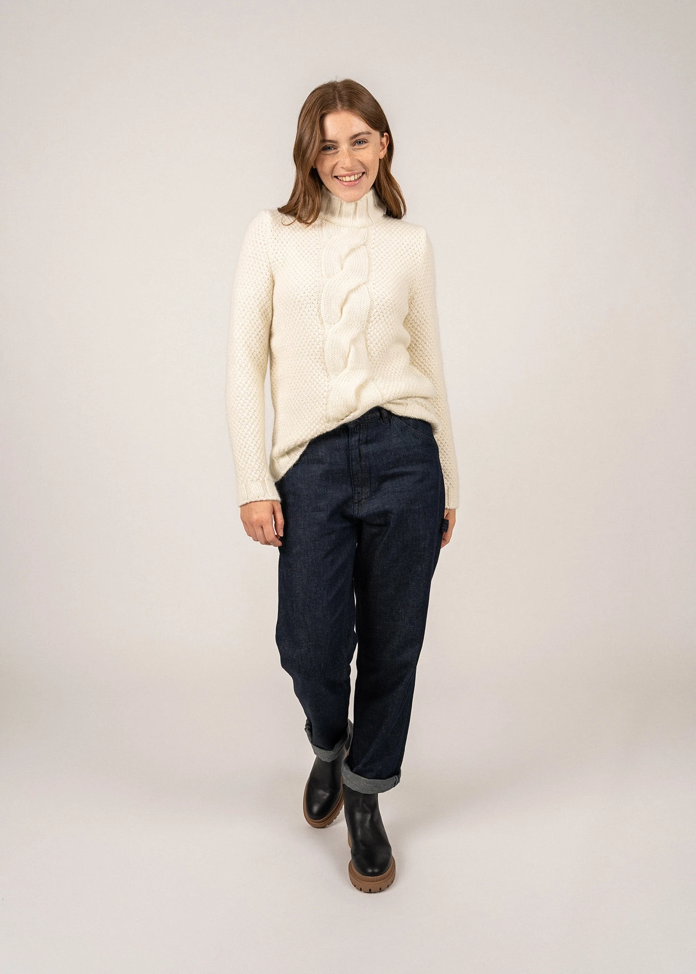 Avec son allure moelleuse et son col montant, le pull Lescun est un indispensable des fraiches journées hivernales. On craque pour son design inspiré des pulls irlandais, avec sa torsade placée, ainsi que sa composition contenant de la mohair.