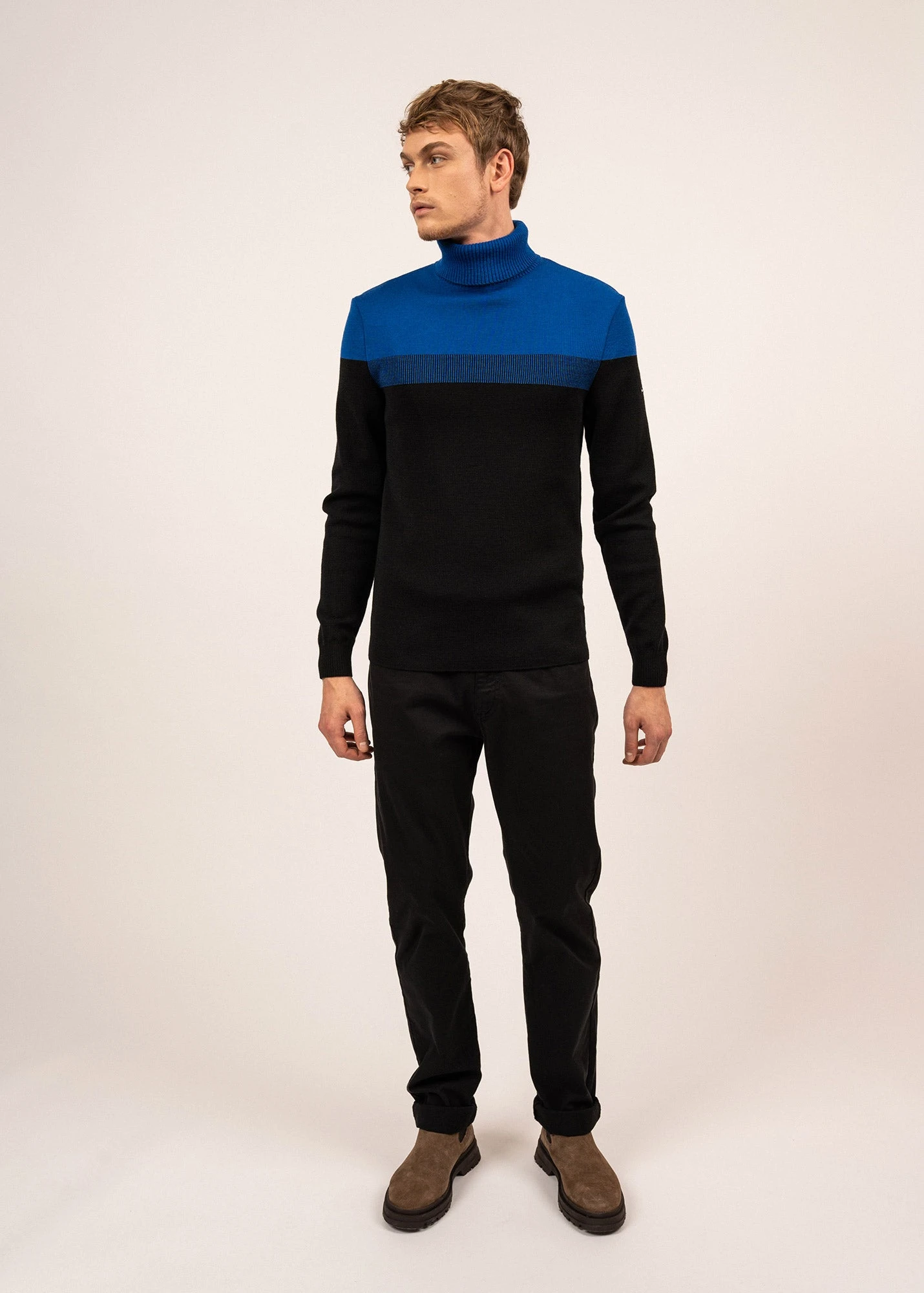 Le pull marin Bretagne roulé se distingue par son col roulé, son empiècement de couleur et ses rayures fantaisies sur le haut du corps. Fruit d’un savoir-faire unique, ce pull vous offre tout le confort et l’élégance que vous souhaitez. Thermorégulateur naturel, la laine concilie confort, chaleur et respirabilité. Une fibre naturelle qui trouve le juste milieu entre la température ambiante et votre température corporelle.