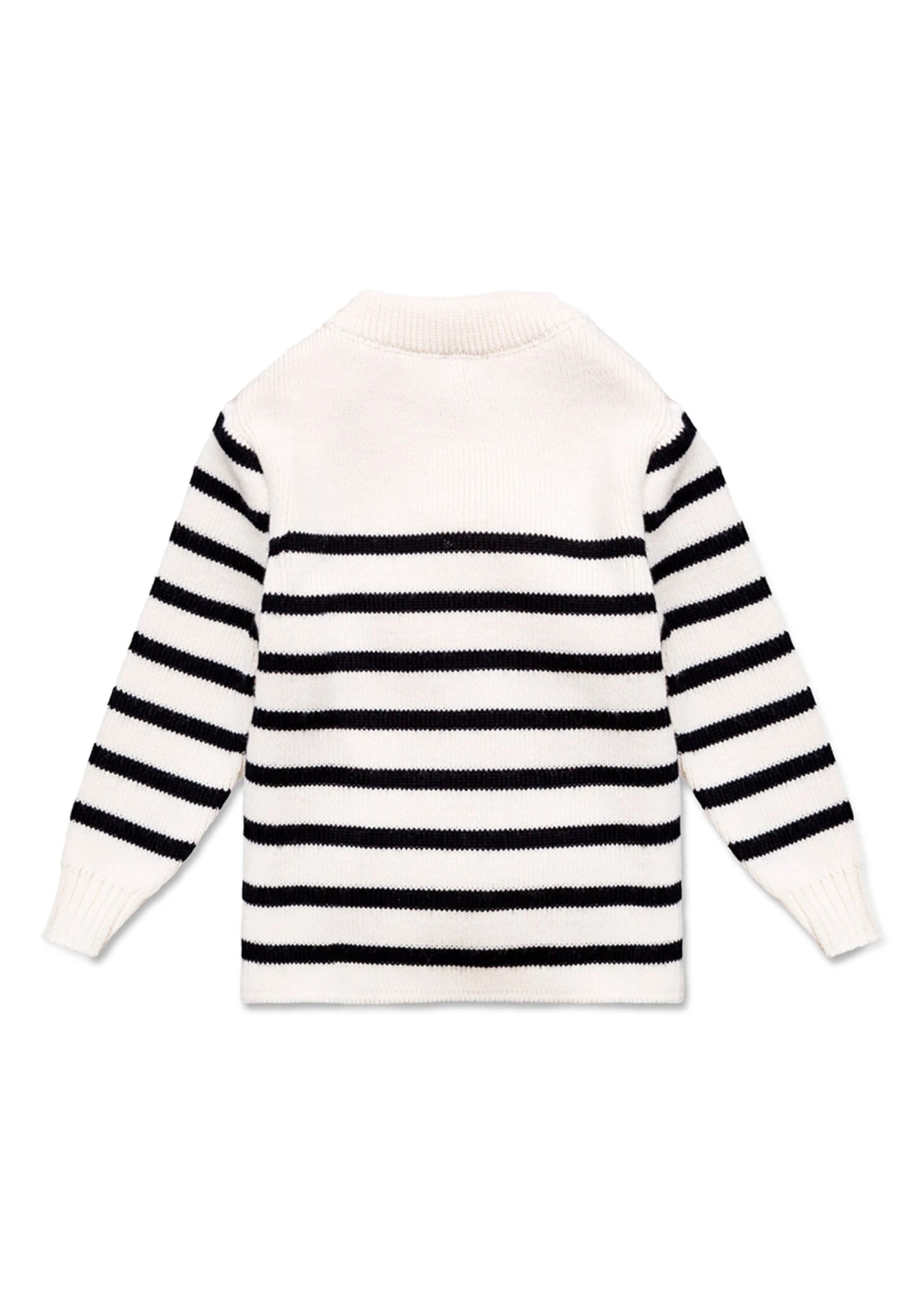 Reprenant les codes de notre iconique Matelot, le pull bébé Moussaillon est le premier pull marin parfait pour les petits. On aime sa composition en laine mélangée, douce pour la peau des enfants, ainsi que ses détails authentiques, comme son col remaillé ou son boutonnage épaule.