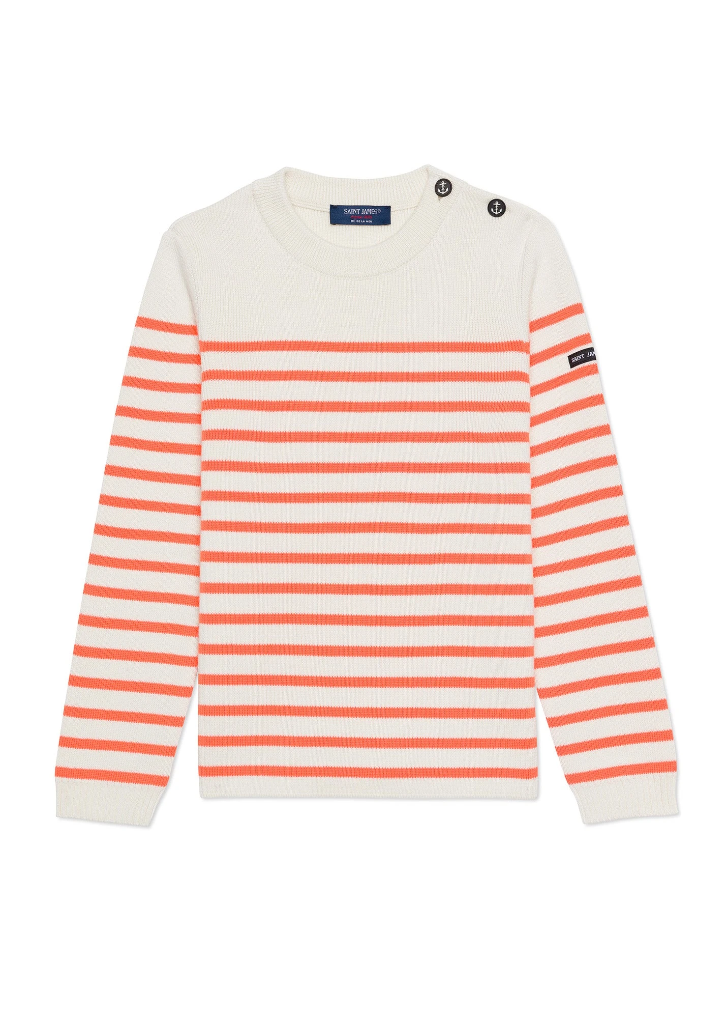 Be the first to review “SAINT JAMES Pull Marin Rayé Enfant Moussaillon – En Laine Mélangée (ECUME/ORANGE FLUO)” Cancel reply