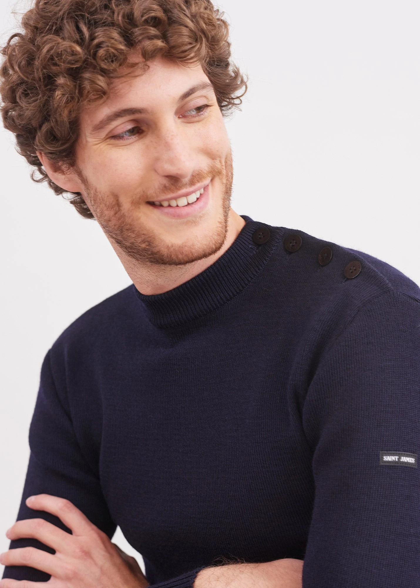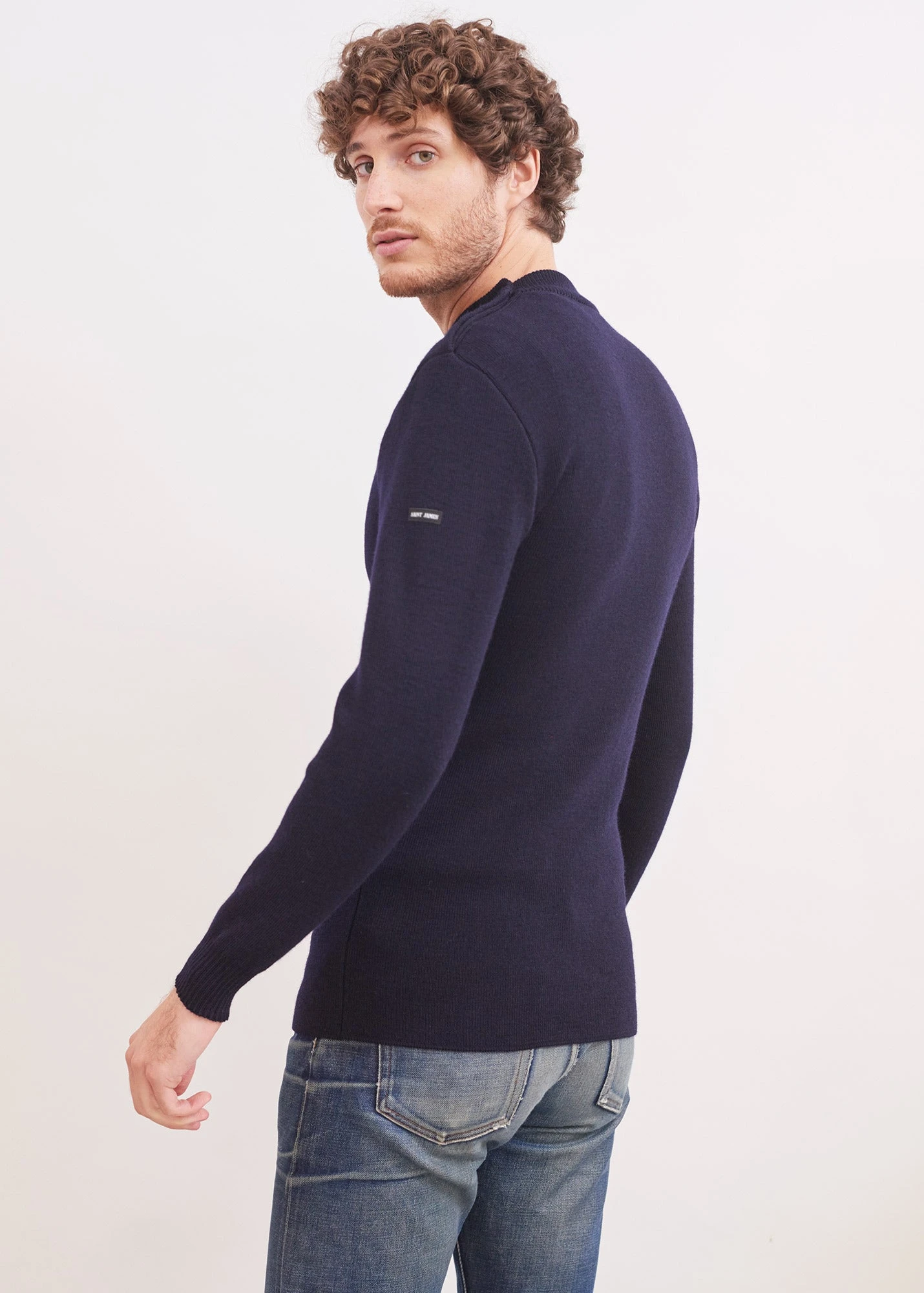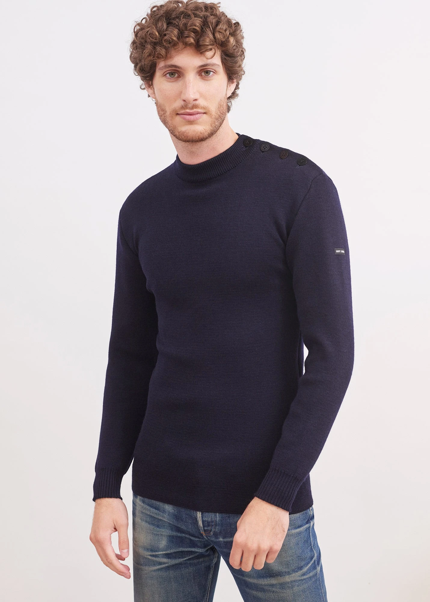 Le pull Officier est le pull marin traditionnel, il est caractérisé par son tricotage serré pour l’isolation thermique, son boutonnage épaule pour s’enfiler facilement et sa longueur de corps, plus importante que les pulls modernes afin de couvrir le dos des marins quelle que soit leur position.