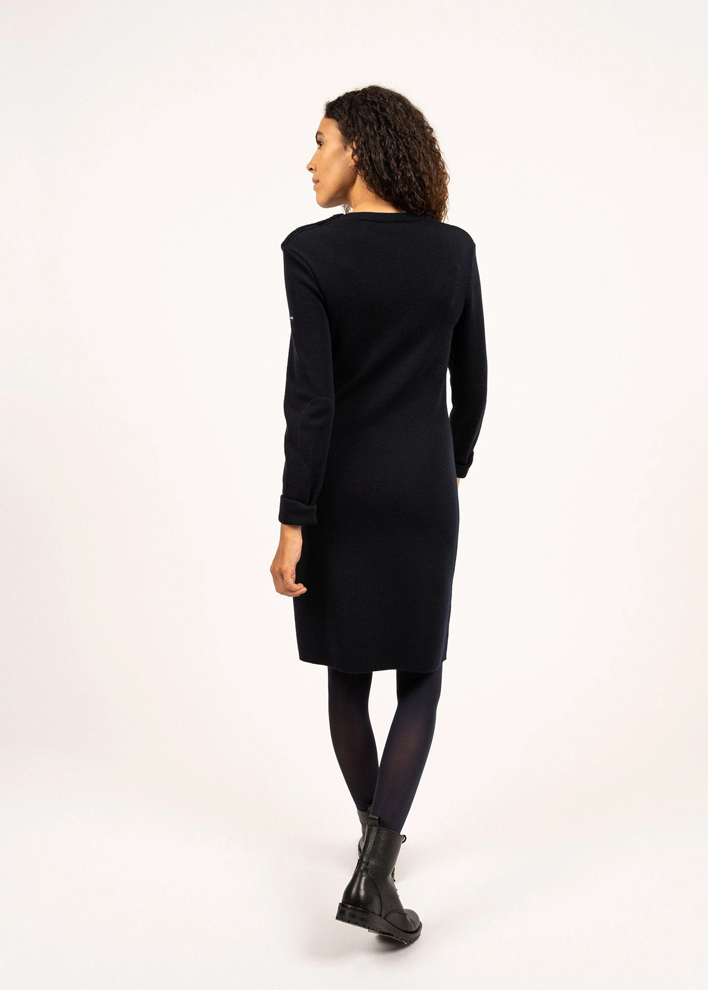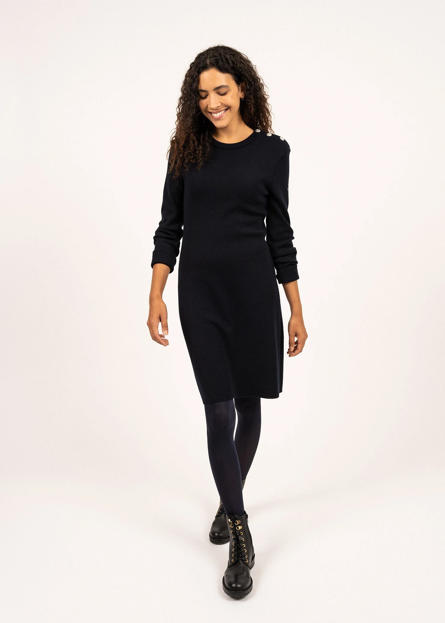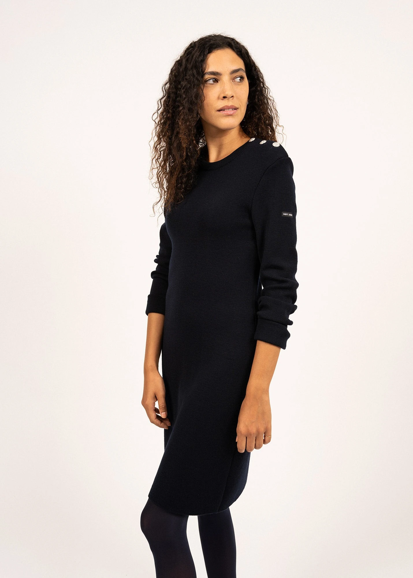Tricotée dans nos ateliers et nouveauté pour cette saison, la robe Grande Marée unie en laine de mérinos s’inspire du célèbre pull marin SAINT JAMES. Un classique élégant réinventé pour une silhouette féminine marine.