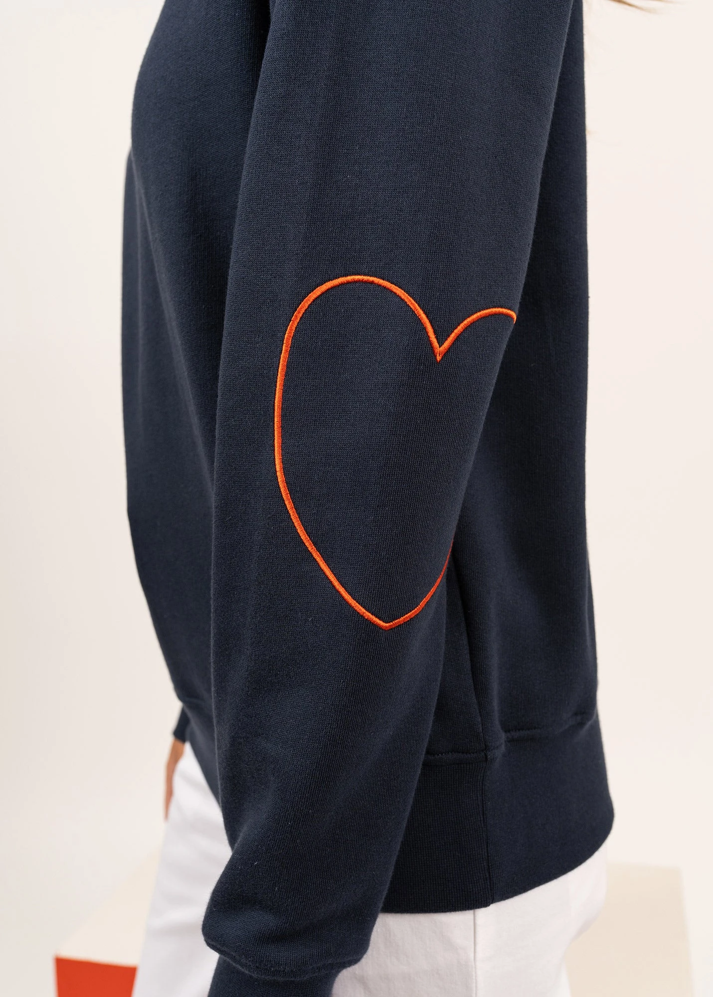 En molleton, le sweat Lola est la pièce homewear confortable par excellence. Aux coudes, un coeur brodé apporte une touche de douceur et de féminité, et rappelle nos indémodables marinières Vaujany. Une pièce casual, à associer au pantalon Lucia pour un look confortable.