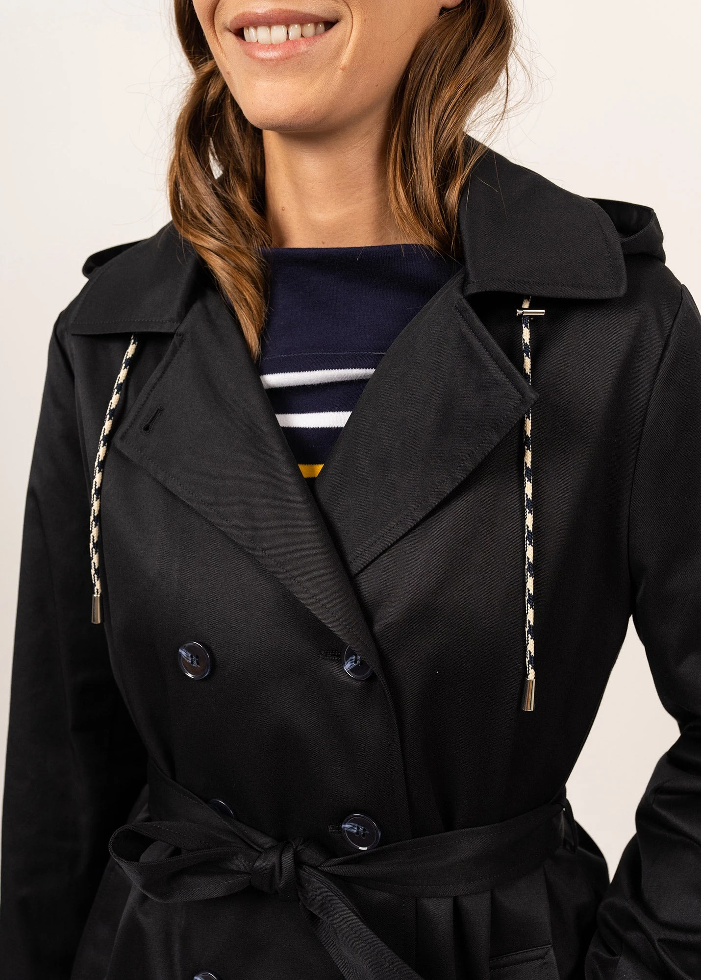 Pièce incontournable des dressings chics et élégants, le trench est une pièce à la fois classique et urbaine. Confectionné en gabardine déperlante, le trench Ste Honorine est idéal pour la mi-saison. Sa capuche amovible vous permettra d’affronter la météo changeante avec style et élégance.
