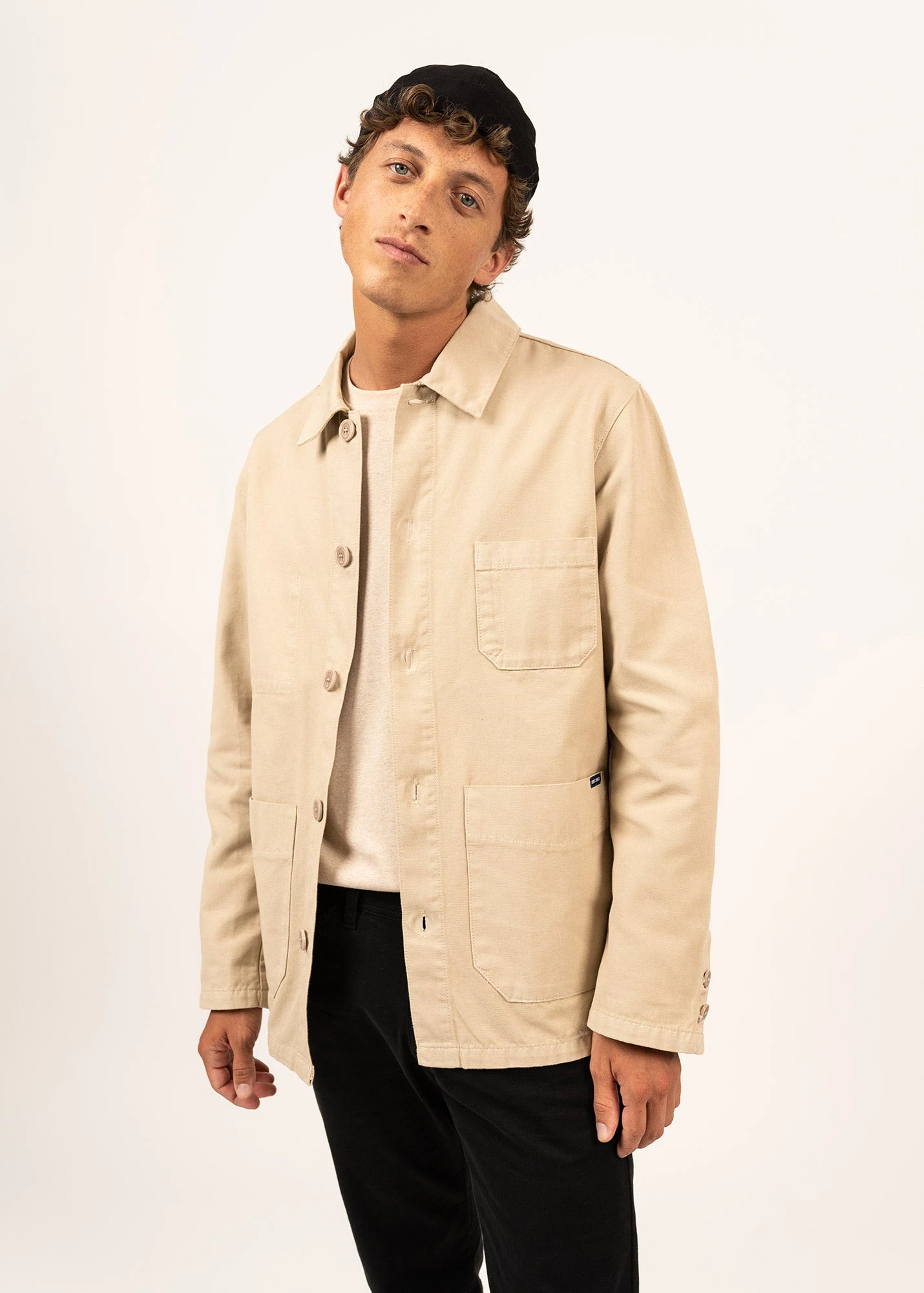 A la croisée du bleu de travail et de la vareuse, la veste Sirocco souligne avec authenticité l’héritage marin de notre maison